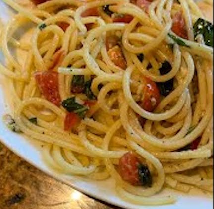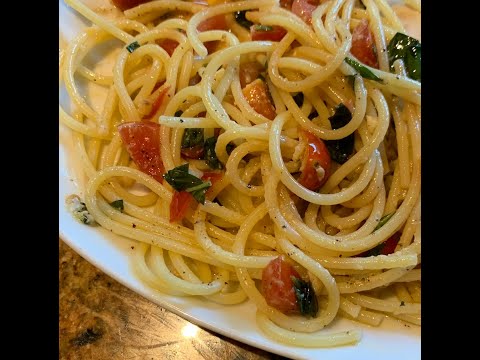 Boil a big pot of water for the pasta. Warm a serving dish (either by heating in the microwave or by filling with hot water and then dumping it out). Cook pasta according to package instruction until al dente.