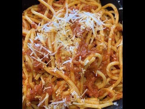 This recipe is so simple and shouldn’t be as good as it is. If you have one tomato sauce in your cooking arsenal, this should be it. We use it primarily for pasta but it can be used for pizza and as a base for soups, stews and casseroles.